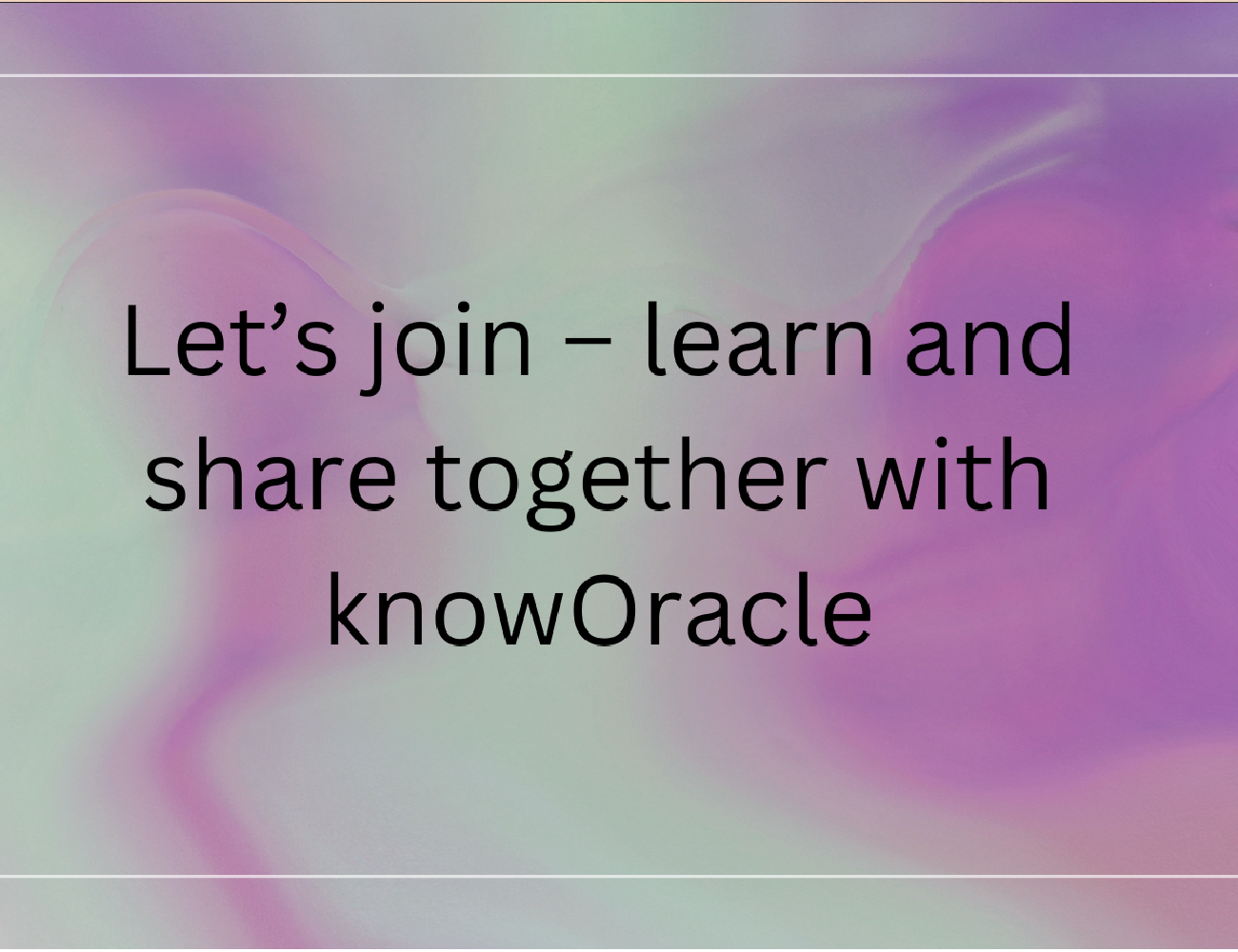 5. Expert – If you have expertise/ mastery on any particular topic/ tool/ module and you are interested to write or give session/ training, do let us know, we will arrange logistics and audience to showcase your skills. We wont charge to you or anyone. All activities on KnowOracle is FREE. Ofcourse you will have complete rights on your contents ( audio, video, demos ) — to know about Current Experts — Clike here